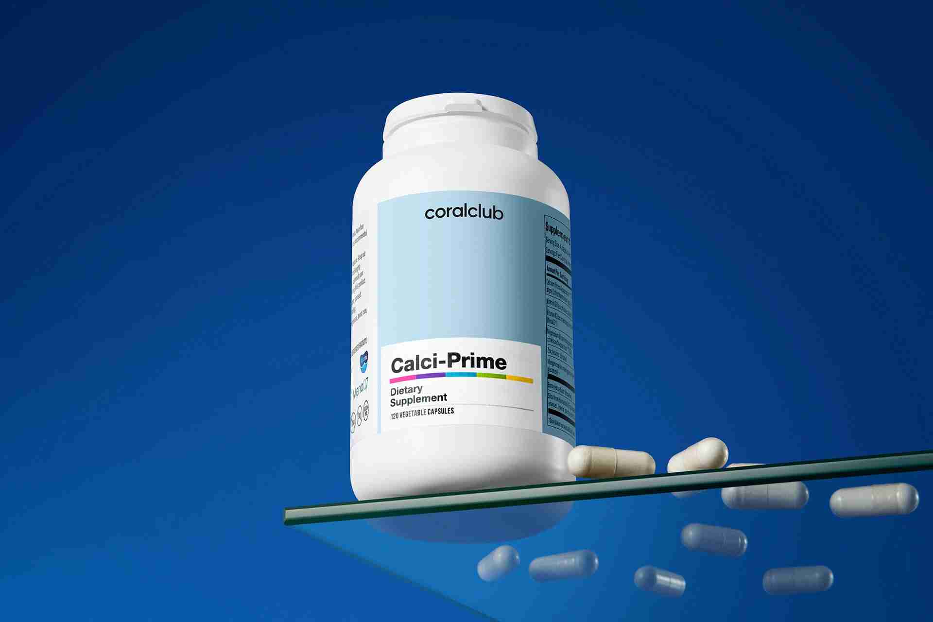 La vitamina K contribuye al mantenimiento de los huesos en condiciones normales. Calci-Prime incluye MenaQ7®**, fórmula patentada y clínicamente comprobada de vitamina K2.