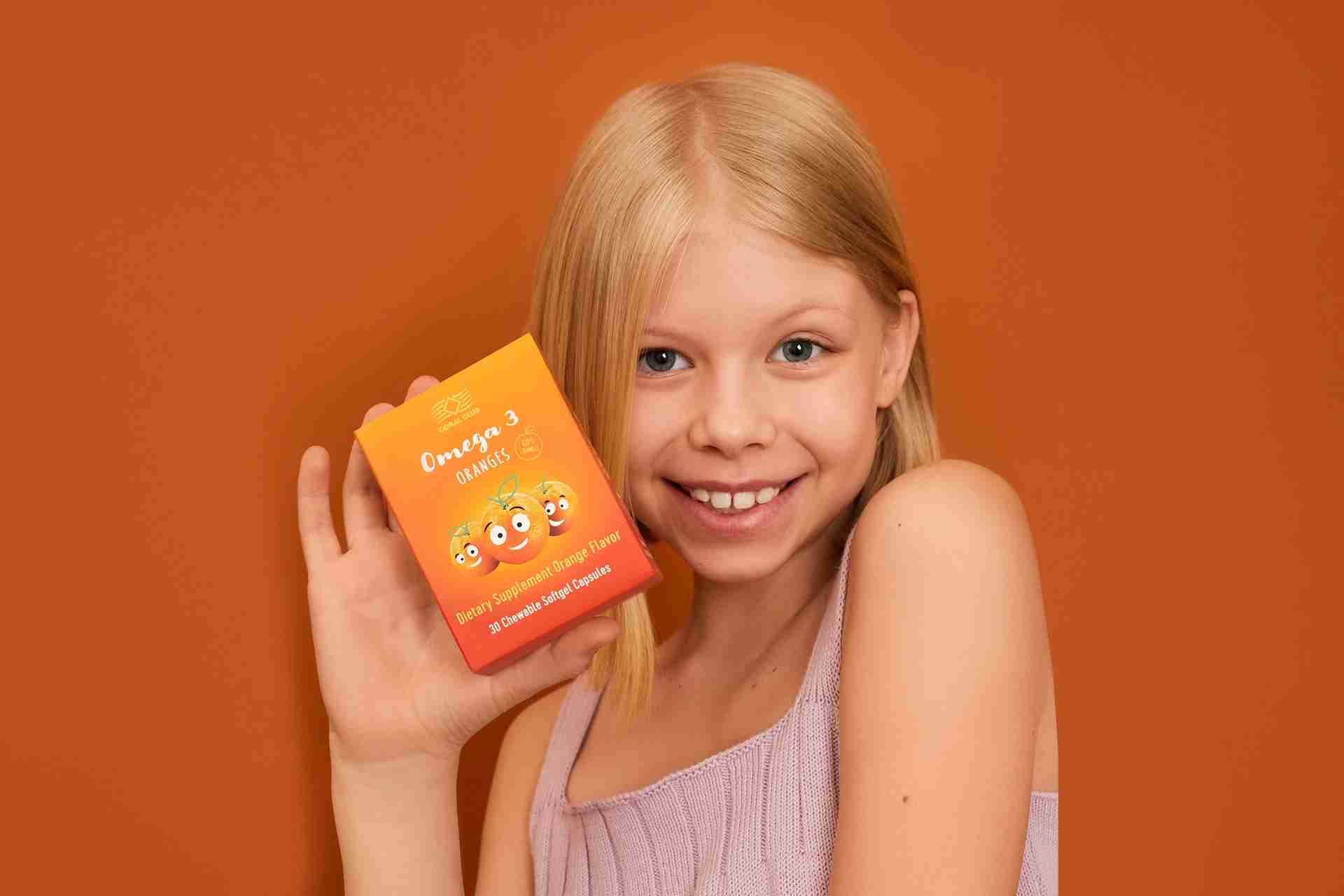 Omega 3 Oranges– complemento alimenticio. Peso neto: 22 g