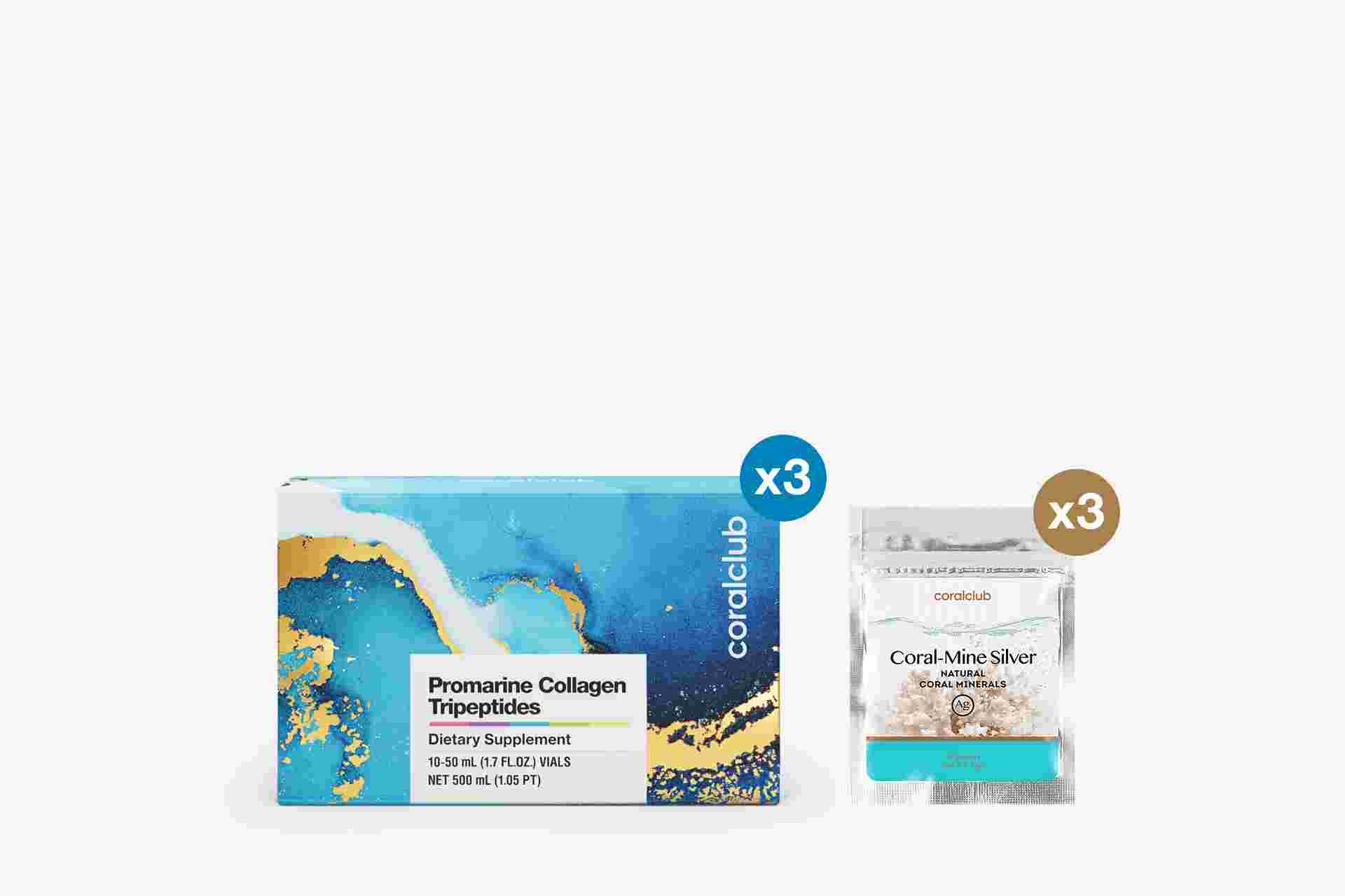 Promarine Collagen Tripeptides (3 paquetes de 10 viales), Coral-Mine (30 bolsitas).